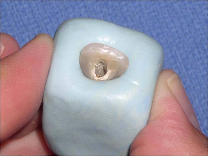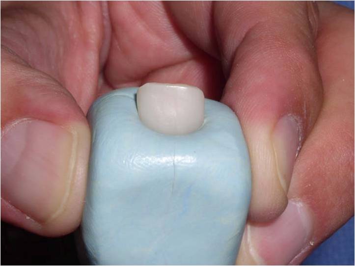 Submerge temp-analog into puddy up to the height of contour and allow to set. Make note of the facial aspect.