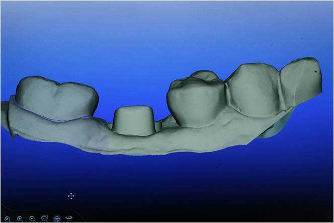 Biomet 3i imports the scan, creates a job, aligns the CAD abutment and designs a custom abutment.